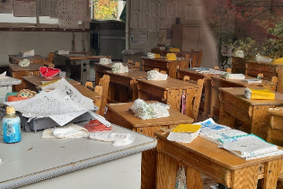 土壌貯蔵施設では実際に放射線量を測定しました。参加者からは「線量が低くて驚いた。実際に線量計を使うことで知ることが多いと感じた」、「除染されている所とされていない所で線量が違ったので、除染は必要なことだと感じた」、「目に見える形で復興に向けた取り組みが行われており、自分は復興のために何ができるだろうかと考えさせられた」などの感想がありました。また、旧熊町小学校では、震災直後の様子がそのまま残っており、事故によりこれまでの日常が突然奪われた現実を実感しました。