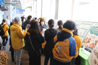 14時のキックオフに先立ち、グッズ販売やグルメブースと並んだ展示ブースには、各チームカラーを身にまとったベガルタ仙台といわきFCの両サポーター約300名に来場いただきました。