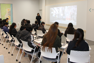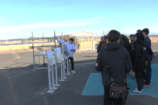 請戸小学校は、海から約300mの距離にありますが、大地震の後、大津波から全員が避難しました。海抜が高くなっている大平山方面にすばやく避難できたこと、一方で近隣の多くの方が亡くなられたことなど説明がありました。その後、双葉駅前周辺を見学し、中間貯蔵事業情報センターにおいてこれまでの除染や中間貯蔵などの環境再生事業について職員から説明を受けました。最後に福島ウィーアーの佐藤夏美代表から「地域に根差したサッカーチームとして、応援されるだけでなく、サッカーをはじめいろいろな活動に取り組んで地域に貢献していきたい」といった話がありました。